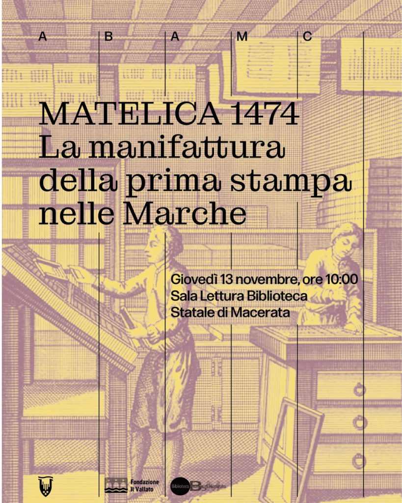 La Biblioteca Statale di Macerata in collaborazione con il Dipartimento di Arti Visive dell’Accademia di Belle Arti di Macerata e la Fondazione Il Vallato di Matelica organizza giovedì 13 novembre…